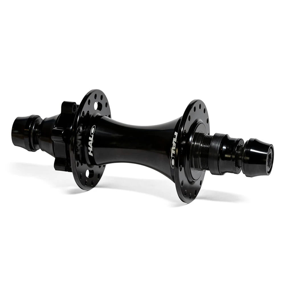”Naast de Bush Driver kenmerken, heeft Halo een lichtgewicht legering as met sterke, vervangbare, M10 “bolt-in” Cr-Mo bevestigingen en legering caps inclusief een 6mm hex broach diep in de as – voor het geval de as begint te draaien wanneer je dat niet wilt!”