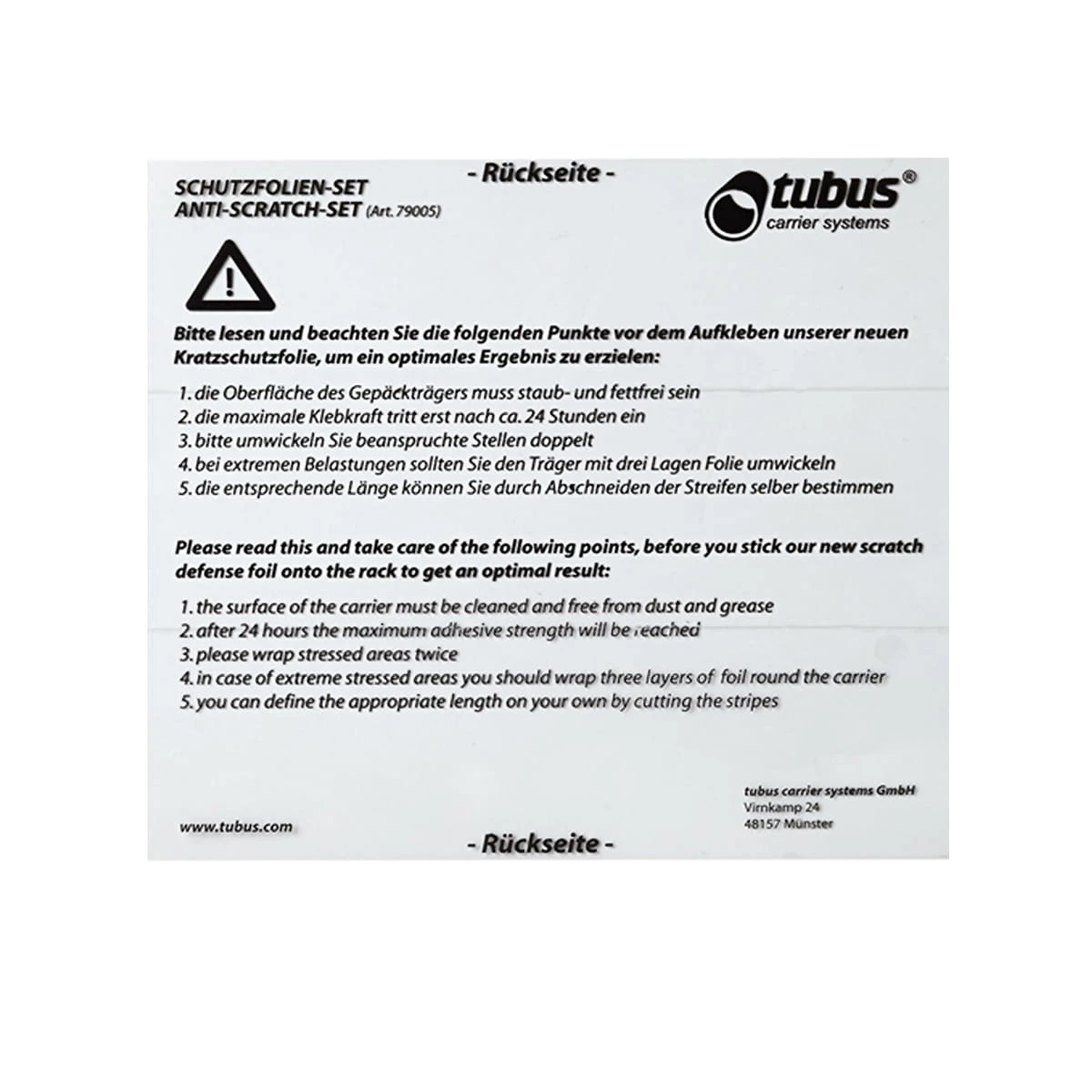 De Racktime beschermfolieset beschermt uw Racktime of Tubus rek tegen schaafwonden veroorzaakt door zakhaken op gecoate rekken.